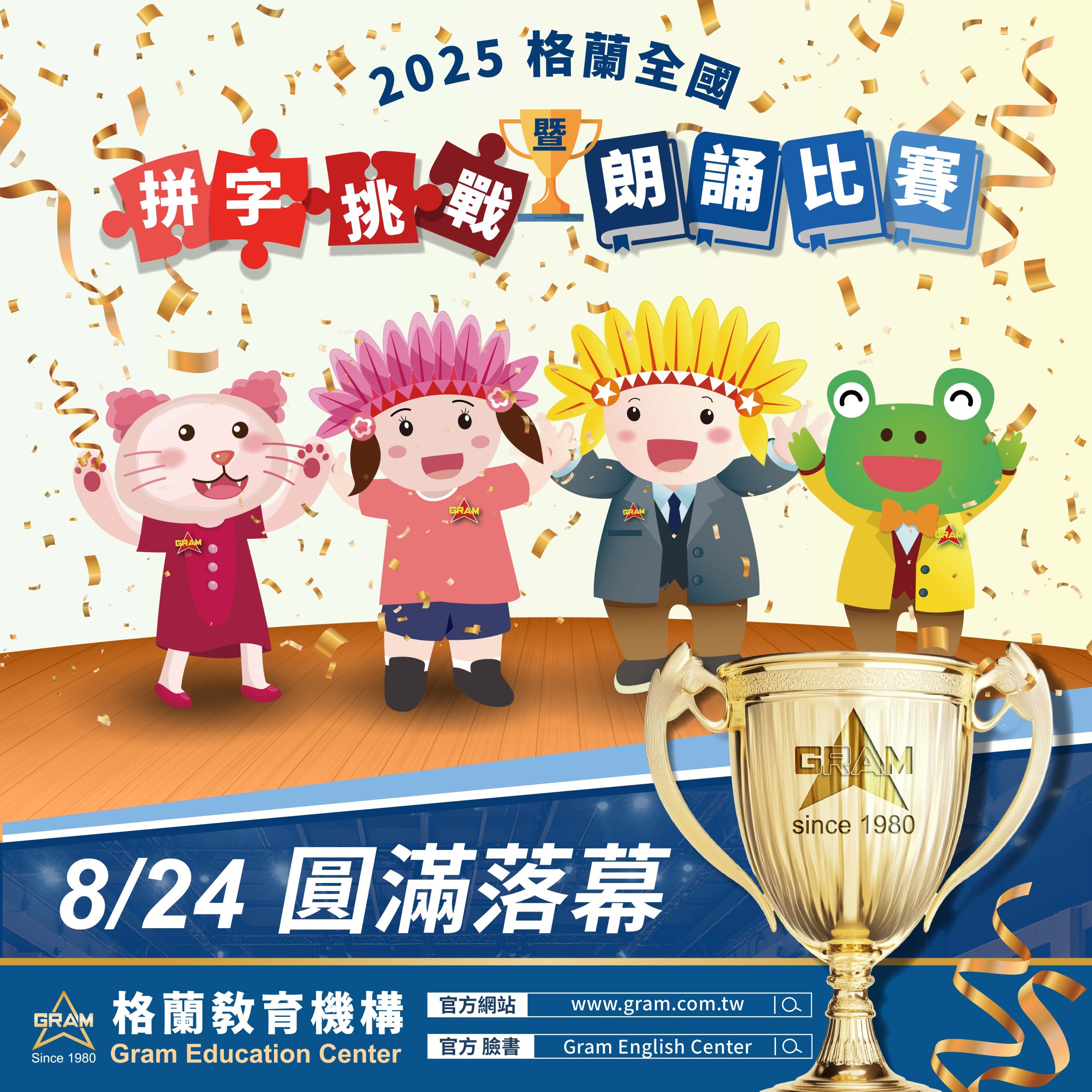 文章分享 Blog All 2024 2025 圓滿落幕|2025 格蘭英語拼字挑戰暨朗誦比賽 🎉2025 格蘭英語拼字挑戰暨朗誦比賽 ... Read More → 2025 格蘭全國拼字挑戰暨朗誦比賽 2025 格蘭全國拼字挑戰暨朗誦比賽 每 ... Read More → PBL專題式學習:提升英語學習的全新方式 什麼是PBL專題式學習? PBL(專題式 ... Read More → Happy 45th Birthday, 格蘭英語! 從 1980 年代的教室黑板,到今日的 ... Read More → 2024格蘭兒童英語檢定 格蘭兒童英語檢定 Read More → 2024朗誦比賽活動短片 2024朗誦比賽活動短片 Read More →